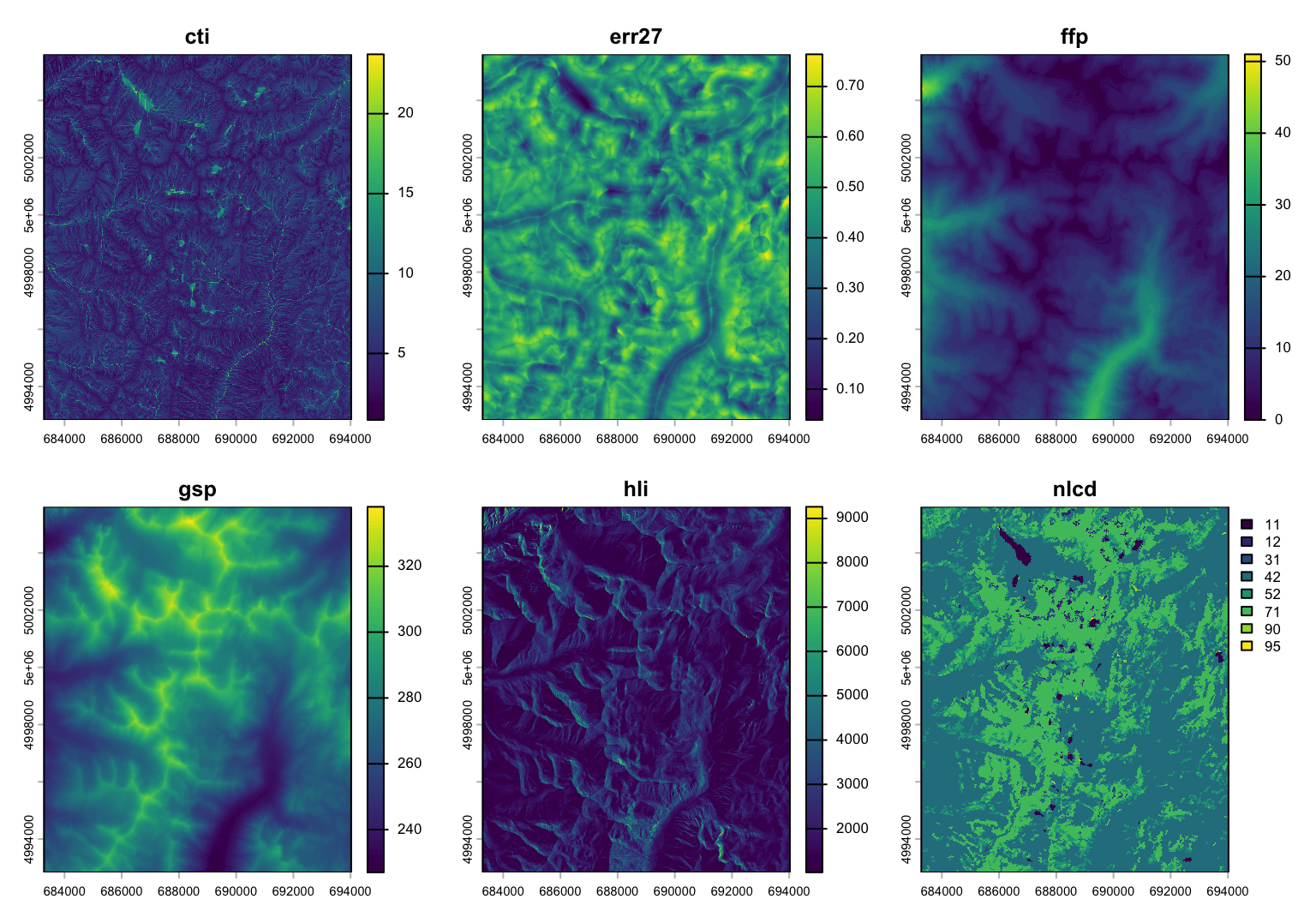 - nlcd: USGS Landcover (categorical map)
