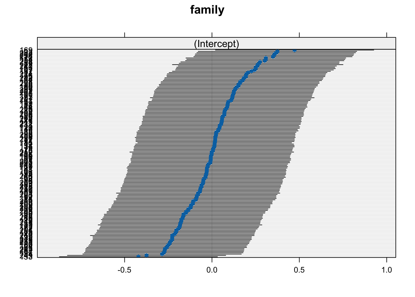 familyis nested withinpopulation. We will thus be ignoring the variableplot.mod4: a LMM where the nesting of